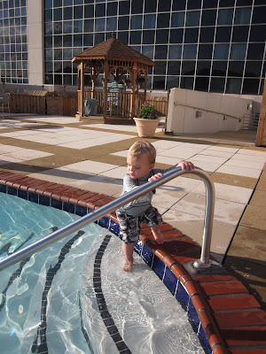 Next stop - the pool at the Marriott. This was the very first day the pool was open so it was pretty frigid. Christian was a total trooper and jumped right in. I, of course, did not...