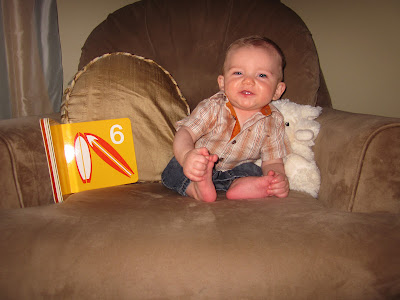 And while we're on the subject of Gav's milestones....he's added a few more words to his vocabulary. He now says bird and dog, bringing his total to 7 words. And I swear he says Mickey, but it sounds more like diddy. Every time he sees Mickey Mouse he says diddy so I have to assume he's trying to say Mickey. But most of the time Gavin just speaks his own little language. He pretty much never stops talking. And he'll talk to just about anything...the TV, the door, his toys, his books, the pantry....anything! We have no idea what he's saying but to him its a real conversation. It's hilarious. Here's a little sample of our jabber-jaws...